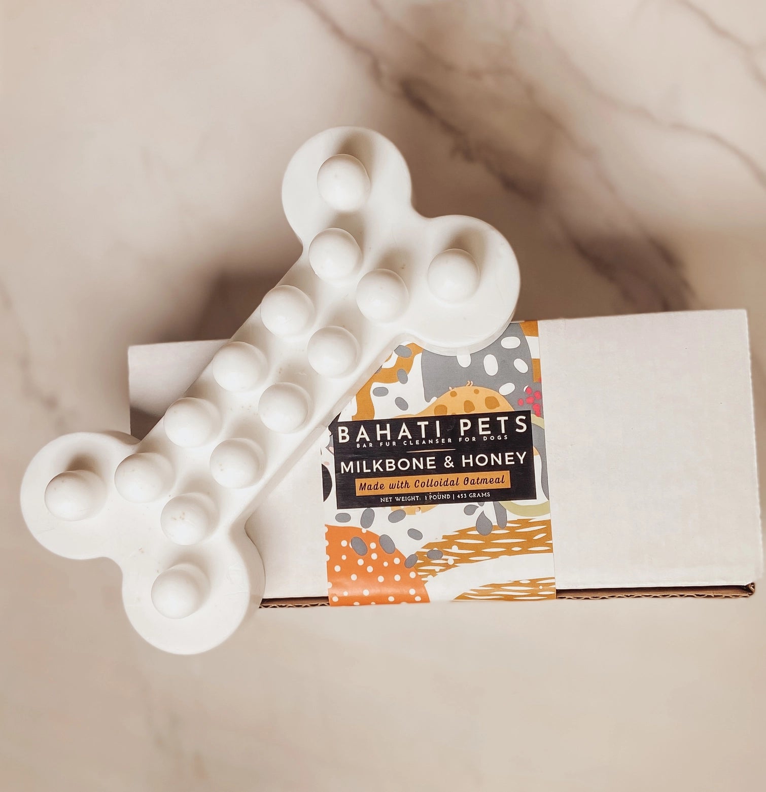 Size: 16 ounces | 1 pound Scent: Milkbone & Honey (oatmeal & honey) Gentle formulation bar soap for dogs made with honey & colloidal oats. It is great for large and small dogs and is gentle on the skin. For large dogs use as is, split the bar apart for smaller dogs Ingredients: Vegetable Glycerin, Sodium Stearate, Sodium Myristate, Sodium Cocoate, Coconut Oil, Sunflower Oil, Sorbitol, Purified Water, Shea Butter, Honey, Colloidal Oatmeal, Titanium Dioxide, Fragrance Oil - How To Use: Apply soap to your dog’s wet coat & lather thoroughly. Work lather from head to tail making sure to avoid eyes & mouth. Rinse thoroughly, tip: rinse more than once! Towel dry completely. - HOW TO STORE: Store in a cool place preferably in a plastic bag or container. The high glycerin content in the soap attracts moisture from the air which may form dew or sweat on the soap when not stored properly. However, the soap is still safe to use if dew forms.